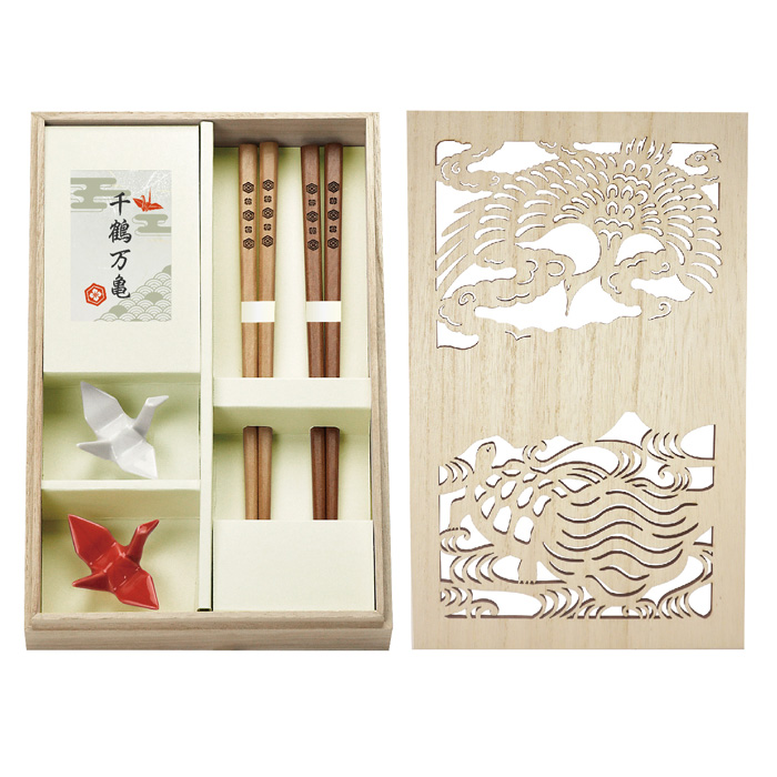 千鶴万亀 箸箸置揃 紅白[HH-4004A]