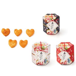 結婚式の引き出物に 「はないちこづつ(ハートせんべい)1個」はいかがでしょうか? 喜びを重ねるという意味があり、お慶びの席にかかせない日本古来のしつらえといえば2段、3段に重ねられたお重です。そんなお重をモチーフに和のプチギフトをご用意しました。 こんな贈り物でしたら、もらって嬉しい引き出物として喜ばれるかと思います。 【商品内容】ハートせんべい5枚入(しょうゆ味)