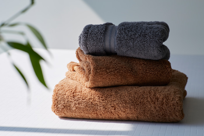 16番甘撚り精紡交撚(一般的な糸より太くてやわらかく毛羽落ちしにくい)」というスペシャルな糸にこだわり、しっかり厚手でボリュームたっぷりのふっくら感となめらかな肌ざわり、吸水性に優れた使い心地、どれもあきらめずにつくりあげたタオルです。