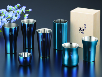 優美に輝く碧がテーブルに高級感を演出。奥深い色合いの器は、見た目からも爽快感を得られます。使い込むうちに独特の風合い・味わいが出てくるのも魅力の一つ。くびれているので自然に持ちやすく飲みやすい。二重構造で氷を入れても結露しにくく、温かさも冷たさも長持ちします。ジャパン・ツバメ・インダストリアルデザインコンクール2020にて審査員特別賞受賞。