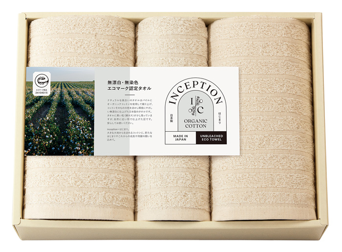 結婚式の引き出物に「インセプション〈エコマーク認定〉 タオルセット」はいかがでしょうか?エコマーク認定とは環…