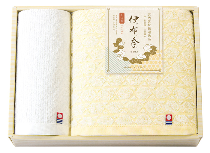 結婚式の引き出物に「今治 伊布季 〈IBUKI〉 タオルセット」はいかがでしょうか?「かごめ紋様」と「あぜ織」の日…