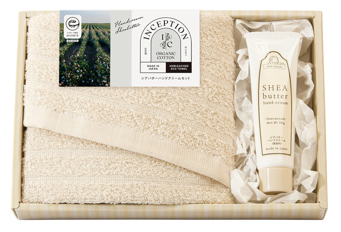 結婚式の引き出物に「インセプション ハンドクリーム&オーガニックタオルセット」はいかがでしょうか?エコマーク…