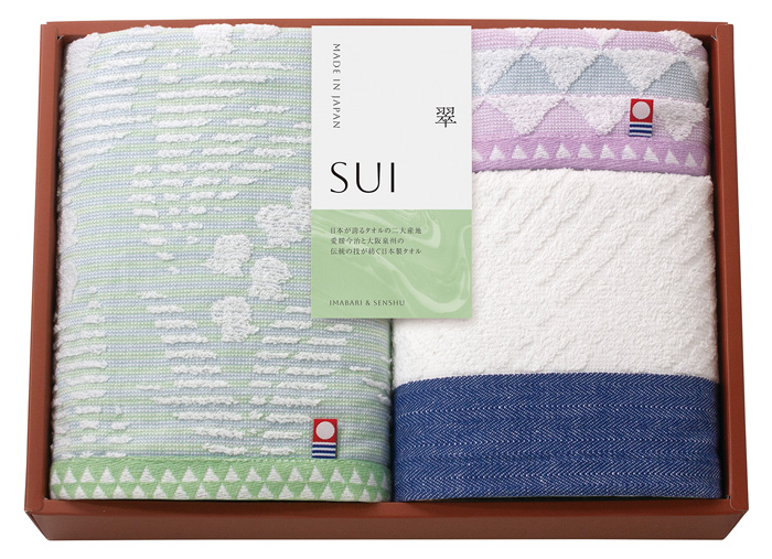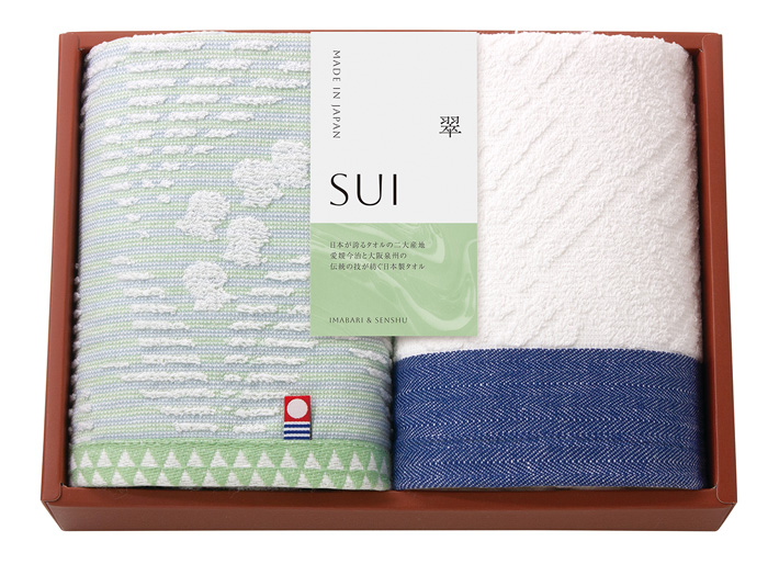 結婚式の引き出物に「SUI-翠- タオルセット」はいかがでしょうか?日本が誇るタオルの二大産地、愛媛今治と大阪泉州…