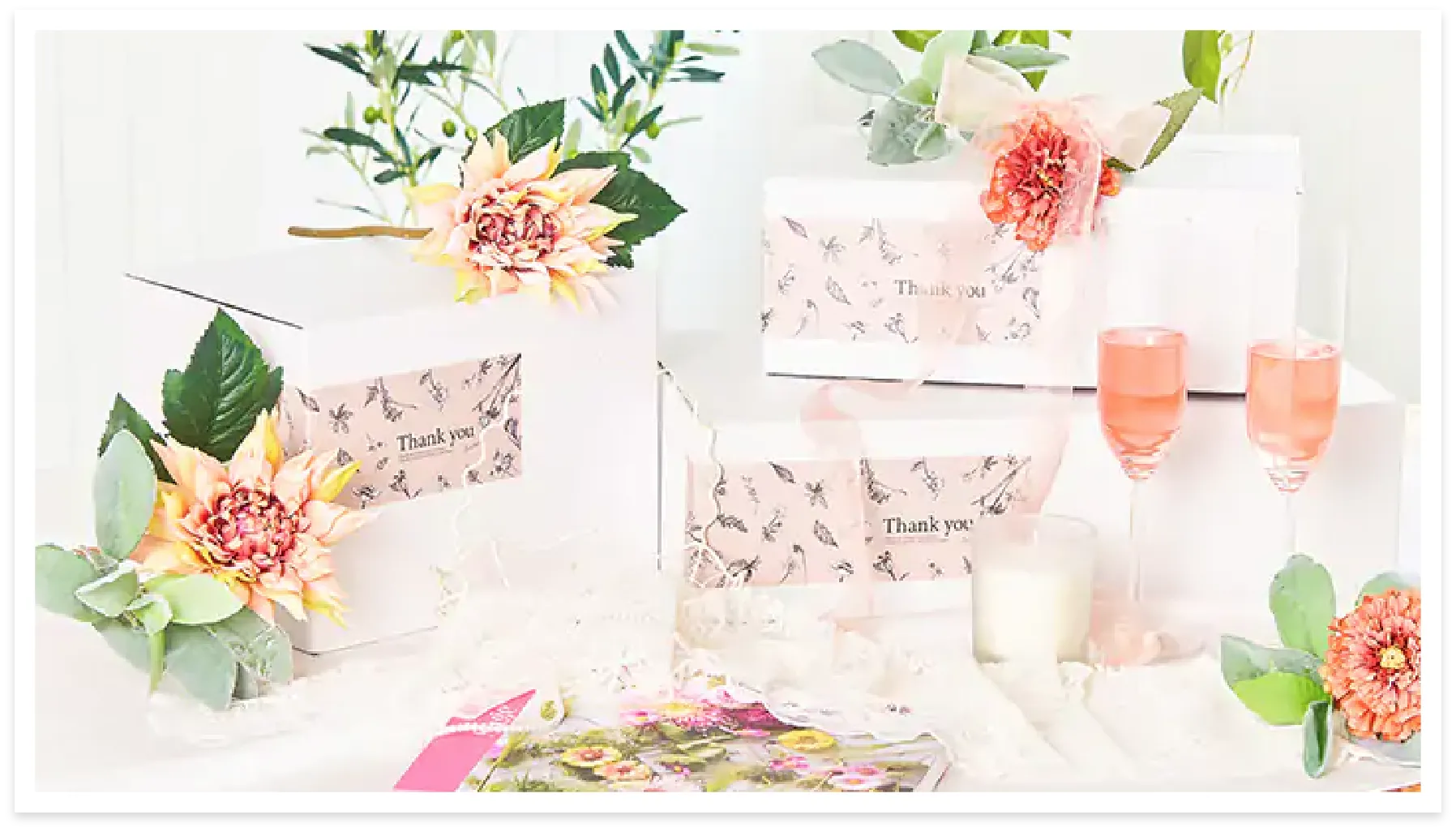 メインの引き出物はエンジェル宅配で選び、引菓子は好きなお菓子を持ちこみたい、という場合に最適です。宅配ボックス、挨拶カード、伝票作成、送料込みでのサービスですのでお得です。
